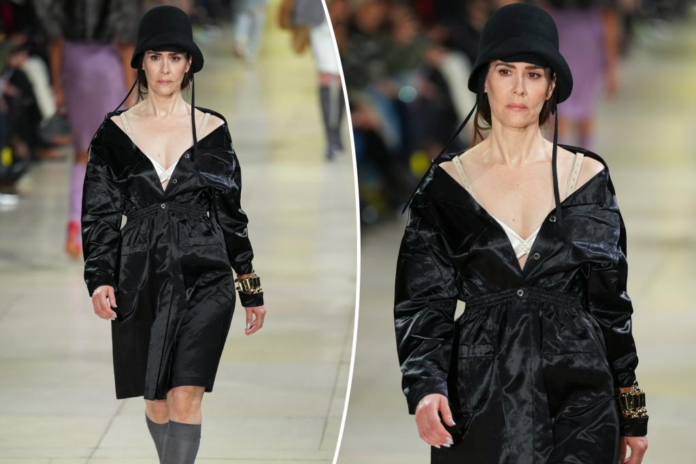 Sarah Paulson makes runway debut at Miu Miu alongside Gigi Hadid and Sunday Rose