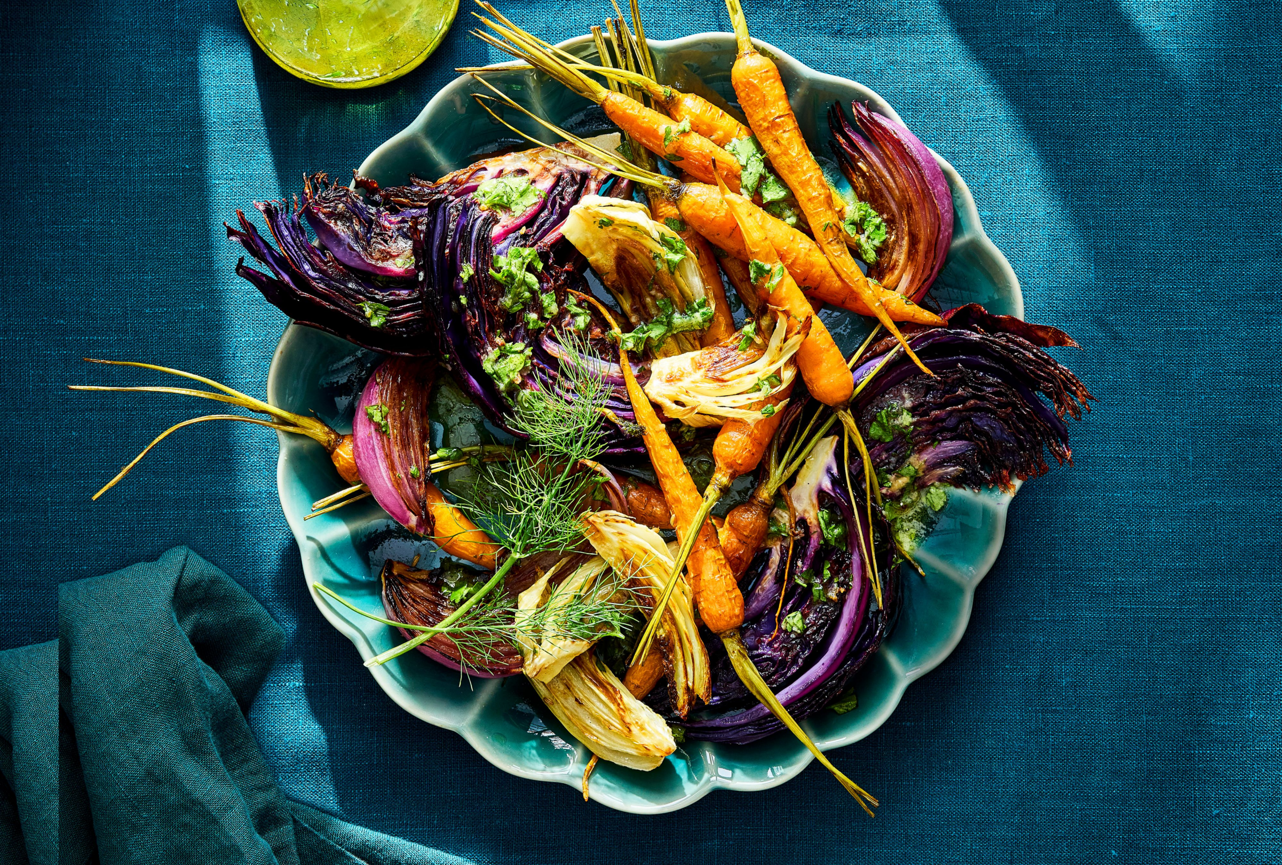 Featured in Alice Zaslavsky’s Salad for Days, this take on slaw includes the usual suspects (cabbage and carrots) with the addition of aromatic fennel. The veggies are served roasted with a honey-Dijon vinaigrette. Alice says the dressing’s flavor profile is a nod to a gin and tonic (courtesy of crushed juniper berries). Juniper berries have a citrusy, almost woodsy flavor. Just a little of the aromatic “berry” goes a long way. If your honey is on the thicker side, you can set the bottle in warm water for a few minutes so it easily whisks into the dressing.